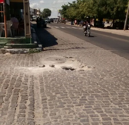 Um buraco de mais de dois metros de profundidade chama a atenção de quem circula pela Avenida Nilo Coelho, nas proximidades do 4º Grupamento do Corpo de Bombeiros (GCB), área central de Petrolina.