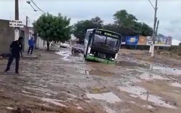 Após a chuva da madrugada desta segunda-feira (18), o cenário de acesso aos bairros Palmares e Pedra do Lorde, em Juazeiro (BA), não é nada bom. Pelo menos quatro carros – entre eles um ônibus – caíram em buracos ao longo da Avenida Miguel Silva Souza, que está passando por requalificação.