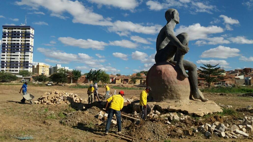 Esta semana equipes da Gerência de Manutenção da Secretaria de Serviços Públicos (Sesp) de Juazeiro (BA) iniciaram a recuperação da base da escultura do Nego D’Água, localizada no Bairro Angary. Como este Blog mostrou recentemente, a escultura está fora do leito do Rio São Francisco, que teve a vazão d’água reduzida.