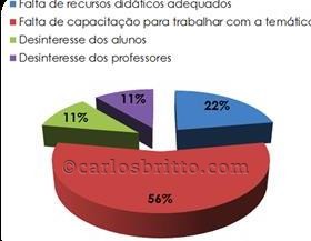 De acordo com a pesquisa, que foi realizada entre os meses de janeiro e abril de 2013, 67% dos professores do ensino médio não se sentem capacitados para trabalhar a temática ambiental de maneira permanente e contínua. Apenas 22% relataram se sentir capacitados.
