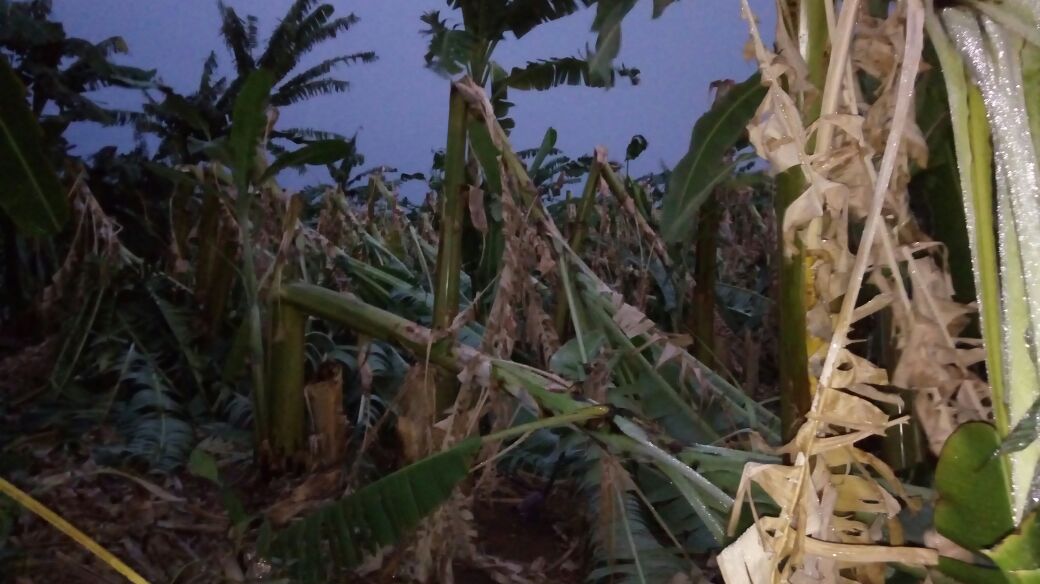 Já em Santa Maria, muitas plantações ficaram destruídas na região do Projeto Fulgêncio. No Centro da cidade também houve estragos. Placas de lojas foram arrancadas e toldos vieram ao chão. Não há informações sobre feridos. Confira algumas fotos que foram encaminhadas ao WhatsApp do Blog.
