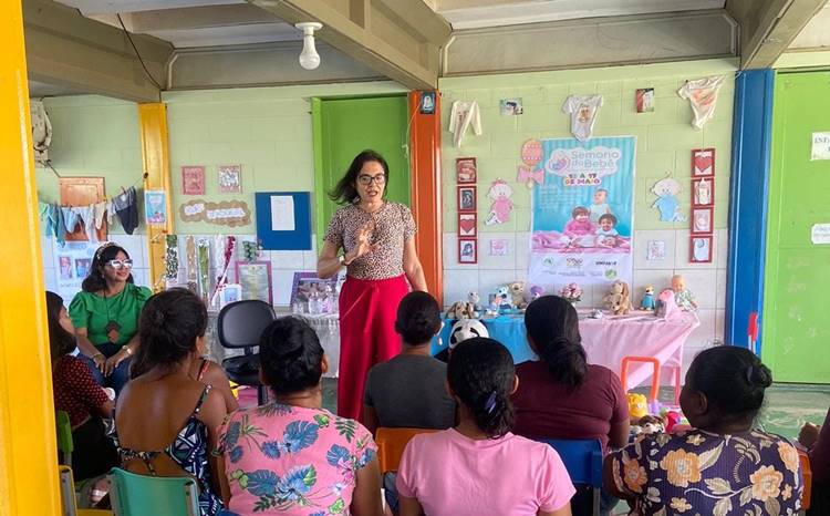 Com ações marcadas por muita informação sobre a primeira infância, incluindo as orientações sobre cuidados, atenção e direitos das crianças de 0 a 6 anos, a EMEI Caic, localizada na sede do município, Bairro Malhada da Areia, foi umas das unidades de ensino infantil a encerrar a programação da Semana do Bebê. No local foi realizada palestra, abordando o tema da iniciativa deste ano, ‘Bebê, um ser de direito: o papel da família, rede de apoio e sociedade no cuidado e proteção da criança’.