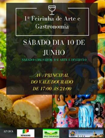 A Feirinha acontecerá das as 17h às 21h, na entrada principal do Vale Dourado (Sentido Pedra Linda). O evento conta com o apoio da Prefeitura de Petrolina e Policia Militar.