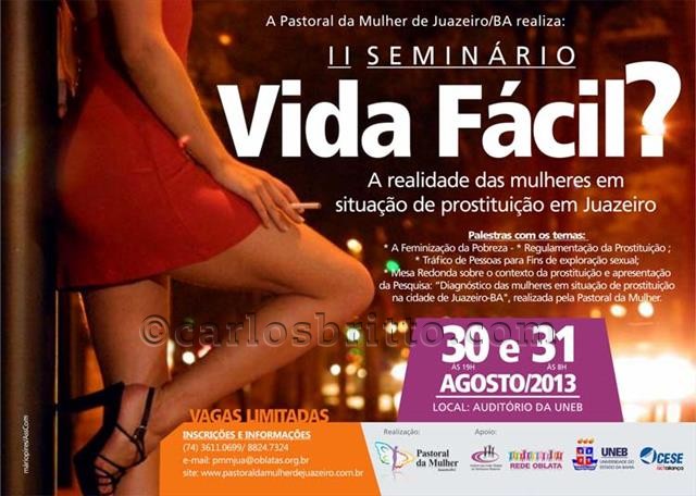 Seminário-VidaFacil-PastoraldaMulherdeJuazeiroA realidade das mulheres em situação de prostituição. Este será o foco principal do 2° seminário sobre o tema, que acontecerá em Juazeiro durante dois dias – sexta-feira (30) e sábado (31) – no auditório da Uneb.