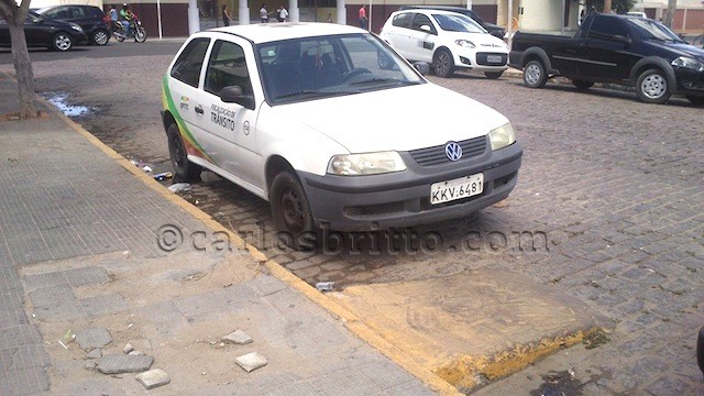 No meio-fio amarelo, indicado estacionamento não permitido, havia justamente um carro da EPTTC no local.