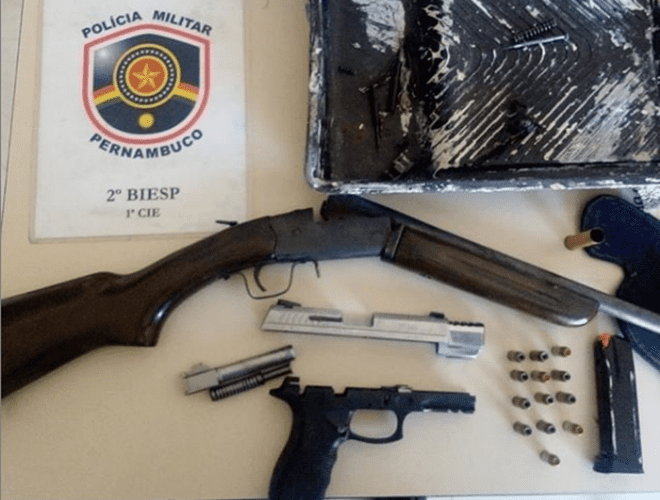 Na ocasião foram encontradas duas armas de fogo – espingarda calibre 32, industrial e numeração raspada, com uma munição deflagrada e uma pistola calibre 40, com 13 munições intactas – e somente uma delas tem documentação legal. Todo material apreendido e o proprietário da residência foram conduzidos à delegacia de plantão.