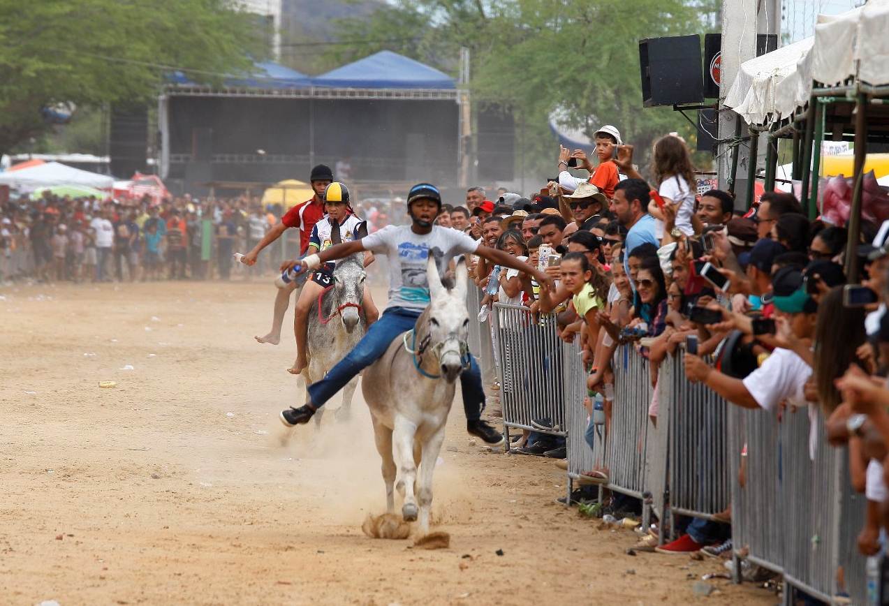 Ontem, cerca de 3 mil pessoas se espremeram à beira da pista de terra batida, onde ocorrem as descontraídas corridas de jumentos e burros. Após mais de duas horas de disputa, o páreo formado pelo jóquei Marcones Santos (de 13 anos) e o jumento Fumaça levou o cobiçado troféu Cangalha de Ouro. “Corro desde os dez anos e meu pai é vaqueiro, então, é um orgulho muito grande para a gente conquistar esse título“, disse o jovem campeão.