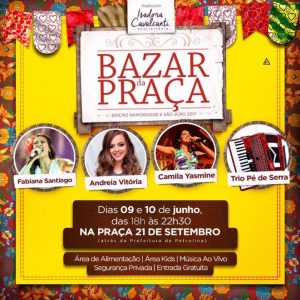 A 4ª edição do ‘Bazar da Praça’ acontecerá em Petrolina nesta sexta-feira (9) e sábado (10). O evento será realizado na Praça 21 de Setembro, Centro Histórico da cidade, das 18h às 22h30, com boas expectativas de reeditar o mesmo sucesso das outras edições. A entrada é gratuita.
