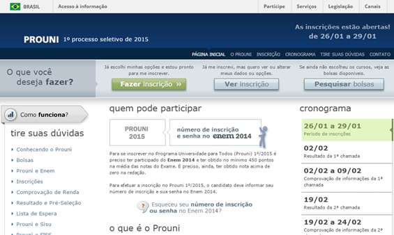 Para se inscrever, é preciso ter feito o Exame Nacional do Ensino Médio (Enem) de 2014 e obtido, no mínimo, 450 pontos na média das notas. Além disso, não pode ter tirado nota zero na redação. Outra condição é ainda não ter diploma de curso superior.