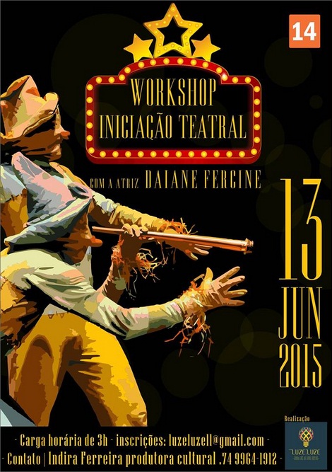 Estão abertas as inscrições para um Workshop de Iniciação Teatral, que acontecerá no dia 13 de junho, das 15h às 18h, na Casa Paroquial de Uauá, norte da Bahia. O workshop será ministrado pela atriz Daiane Fercine, que iniciou no teatro pelo Sesi, estuda na Escola de Artes Cênicas de Santos (SP) e é integrante da ‘Cia Vinho e Alma’.