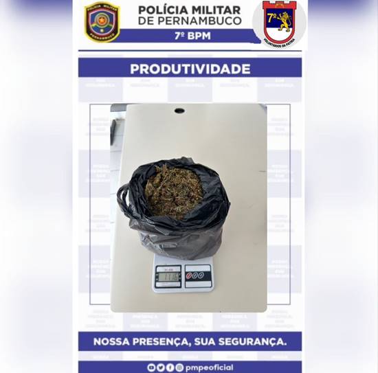 Um patrulhamento ostensivo realizado pela equipe do 7º Batalhão de Polícia Militar (BPM) em Ouricuri (PE), Sertão do Araripe, na manhã de ontem (22), conseguiu apreender um total de 1.116 gramas de maconha pronta para o consumo.