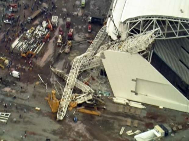 Um acidente nas obras do estádio do Corinthians, ocorrido no início da tarde desta quarta-feira (27), deixou três pessoas mortas, de acordo com o Corpo de Bombeiros de São Paulo. Uma estrutura, que seria um guindaste e estava do lado de fora do estádio, tombou e atingiu parte da estrutura das arquibancadas. Em nota, o Corinthians lamentou o acidente.