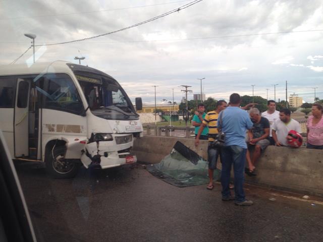 Um acidente na Ponte Presidente Dutra, agora pela manhã, envolveu cinco veículos – um deles um micro-ônibus.