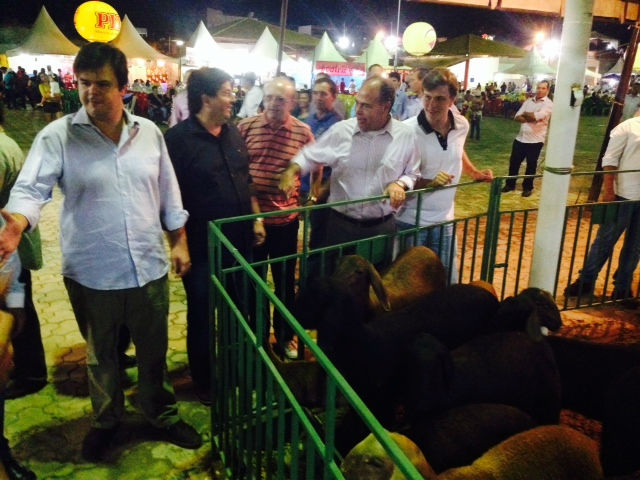 O senador, juntamente com Miguel e Fernando Filho, andou pela feira de caprinos e conversaram com alguns criadores presentes à feira.