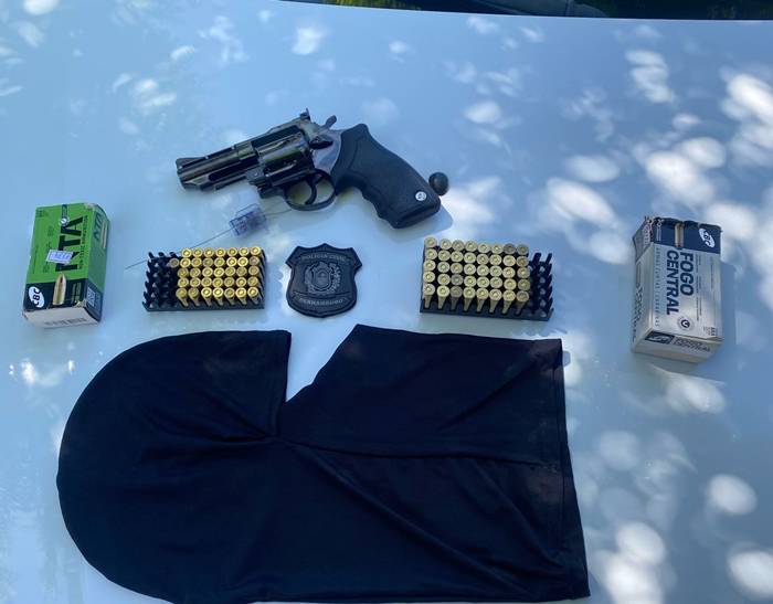 De acordo com o boletim, dias antes o indivíduo teria ameaçado “estourar os miolos” de sua ex-companheira, a qual procurou a delegacia para denunciar o fato. Com o homem os policiais um revólver calibre 38, mais munições do mesmo calibre além de calibre de pistola 380. Na ação a equipe também apreendeu uma picape Renault Oroch, com restrição de roubo, e uma balaclava.