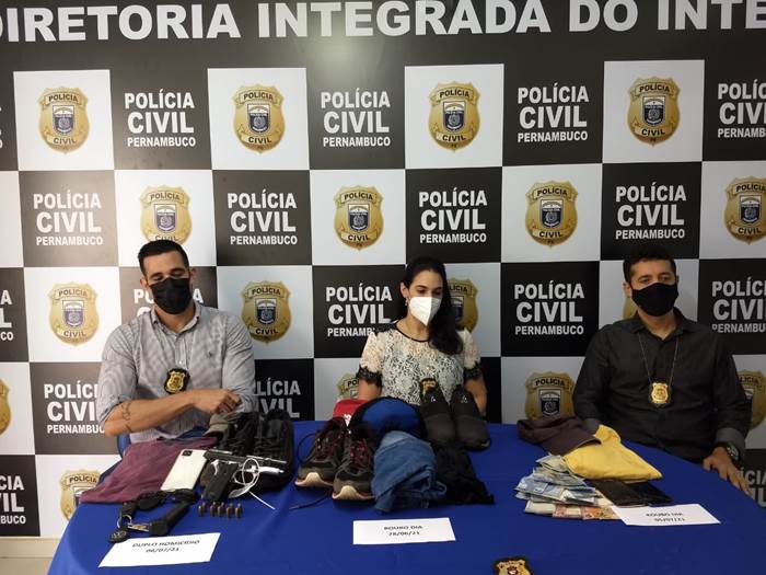 O acusado de assassinar dois homens nas imediações da agência principal da Caixa Econômica, no Centro de Petrolina, na manhã da última terça (6), agiu com mais dois comparsas envolvidos em roubos na cidade. A informação foi repassada pela titular da 26ª Delegacia Seccional (DESC) da Polícia Civil (PC), Isabella Pessoa, durante coletiva de imprensa realizada ontem (7) para apresentar mais detalhes sobre o fato.
