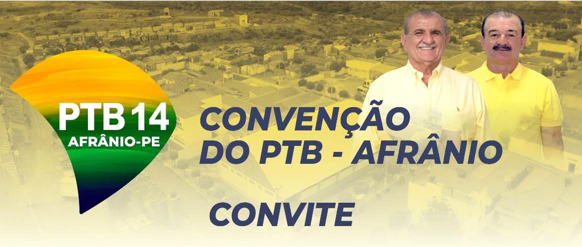 A comissão provisória do Partido Trabalhista Brasileiro (PTB) de Afrânio (PE), Sertão do São Francisco, realizará na próxima quarta-feira (16), data-limite para homologação de candidaturas nas eleições deste ano, sua convenção municipal. Na oportunidade os nomes de Adalberto Cavalcanti e Paulo de Passim serão oficializados, respectivamente, como candidatos a prefeito e vice do município.