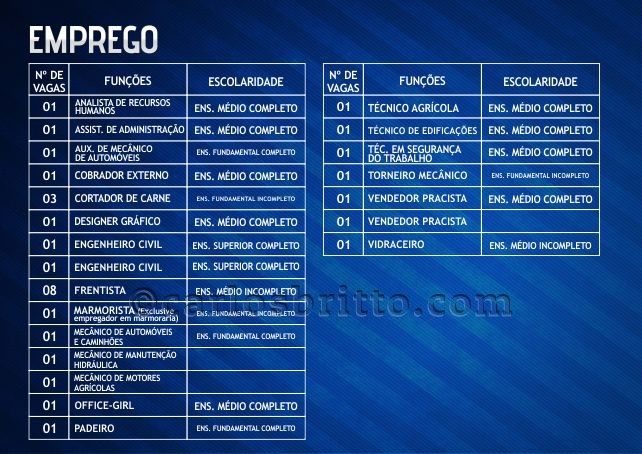 O frentista deve ter, no mínimo, Ensino Médio incompleto. Ainda há chances para engenheiro civil, designer gráfico, mecânico em diversas áreas, office-girl e vendedor pracista.