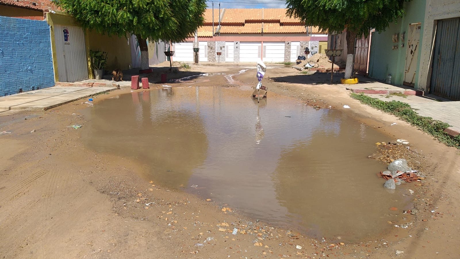 Os moradores da Vila Rotary, no bairro Padre Cícero, estão sofrendo com o vazamento na tubulação de água limpa há mais de 15 dias. Segundo eles, as ruas já estão praticamente todas inundadas, causando diversos transtornos para quem precisa transitar – tanto motoristas, como pedestres e ciclistas.