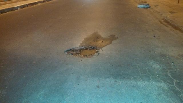 Um bueiro estourado no meio da pista (nas imediações da Podium Pneus) pode acabar provocando uma situação mais séria para quem não se atentar para o problema. O registro foi feito pela equipe do Blog.