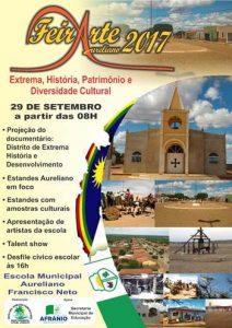 Pelos próximos dias o Distrito de Extrema, na zona rural de Afrânio (PE), Sertão do São Francisco, vai respirar cultura. Trata-se do Projeto ‘Feirarte Aureliano’, que está em sua primeira edição. A iniciativa tem como objetivo conscientizar a turma para preservação e valorização do patrimônio histórico, cultural e natural de Extrema, como também conhecer a Vida e trajetória de Aureliano Francisco Neto, o “Lerinho” – fundador da escola da comunidade.