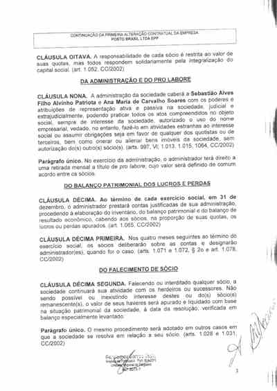 4. A bem da verdade encaminho para a apreciação do Blog, e publicação, a íntegra do Contrato Social do Posto Brasil, donde se denota que a Sra. Ana Maria de Carvalho Soares, possui os mesmos direitos do que eu, inclusive no que tange à administração e retirada de pró-labore da empresa.