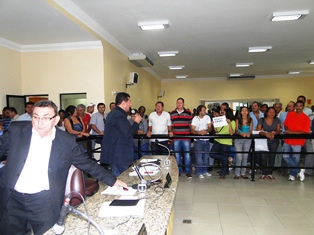 O vereador Alvorlande Cruz (PRTB) discursa nesse momento. Diz que quem é contra a venda é saudosista e ultrapassado. Vaiado pelo público, já ameaçou tirar a plateia que rejeita sua opinião.