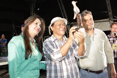 Ao final da apresentação, ele foi homenageado pela Prefeitura de Petrolina com o troféu Asa Branca, por divulgar a arte do eterno rei do Baião. A honraria foi entregue pela primeira-dama Andréa Lóssio e o vice-prefeito Domingos Sávio, já que o prefeito Júlio Lóssio tinha compromissos hoje (22) em Brasília. Mas esse foi apenas um detalhe. O mestre Dominguinhos saiu de lá satisfeito. E com toda justiça. (foto: Ascom PMP/divulgação)