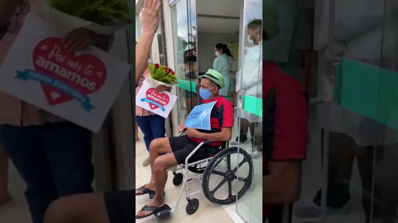 Visivelmente debilitado e mais magro em consequência dos dias que passou na UTI, Barbosinha não deixou de esbanjar simpatia ao deixar o hospital, ainda na cadeira de rodas e vestindo a camisa do Sport Recife, seu time do coração.