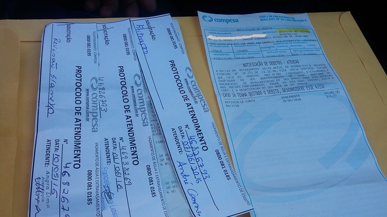 O cliente diz que já abriu três protocolos junto à Compesa mas, segundo ele, as cobranças estão chegando e até o momento nenhum técnico compareceu à sua residência para fazer a revisão da leitura. Segundo informações da Compesa, após a solicitação a revisão deve ser feita em até 15 dias. O problema, explica Thiago, é que isso não vem acontecendo.