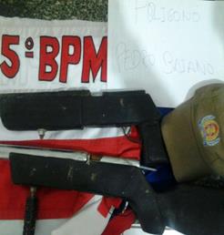 Por meio de denúncia, a equipe do 5° Batalhão encontrou na residência de Edivan duas armas de grosso calibre e de fabricação artesanal. Ele foi apresentado, juntamente com as armas, à Delegacia de Polícia Civil (DPC). (Foto: 5º BPM/divulgação)