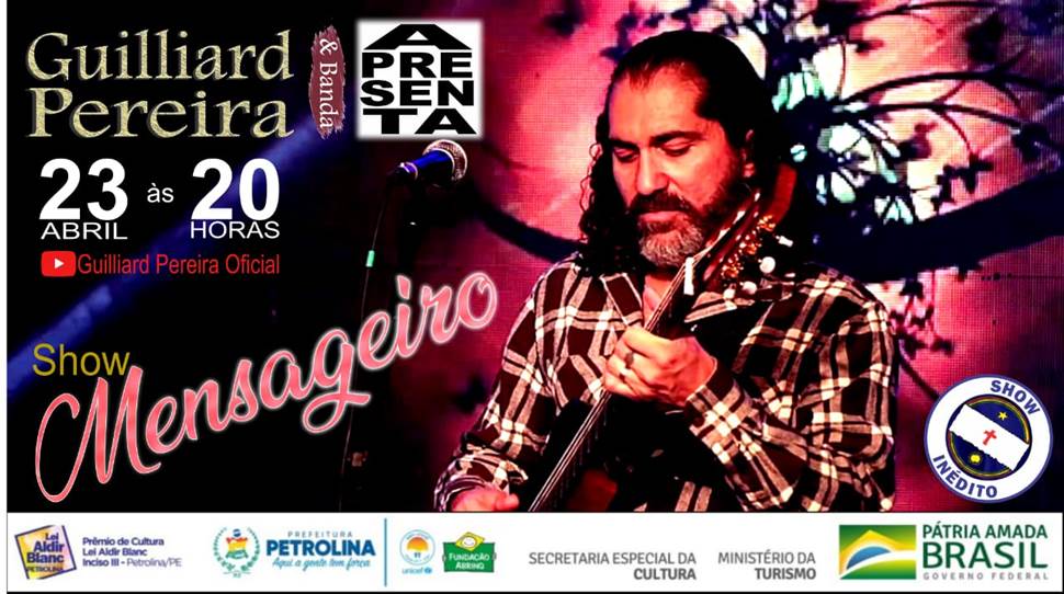 Entre reggae, maracatu, baião, sambas e baladas, ‘Mensageiro’ é um show em que o peso do rock n’roll se faz presente em versos e arranjos que buscam levar o público além do óbvio. Para conferir tudo isso, basta acessar o canal oficial de Guilliard Pereira no YouTube nesta sexta-feira (23), às 20h. Imperdível.