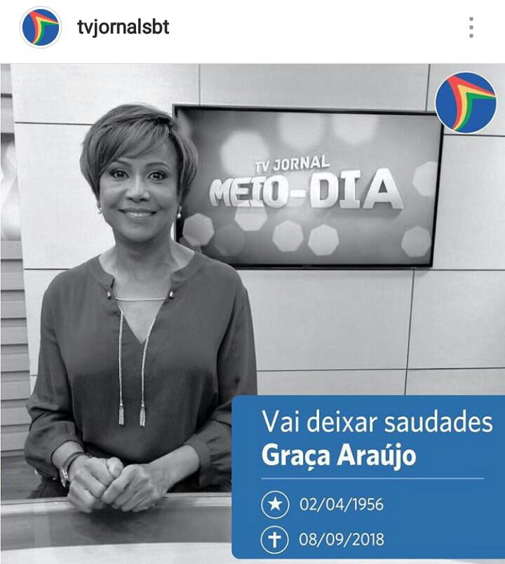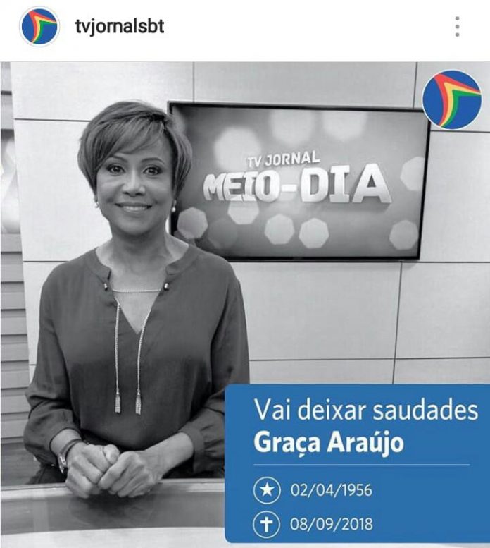 A apresentadora da TV Jornal Graça Araújo, de 62 anos, faleceu neste sábado (08), por volta das 12h55, em decorrência de um Acidente Vascular Cerebral (AVC) hemorrágico extenso.
