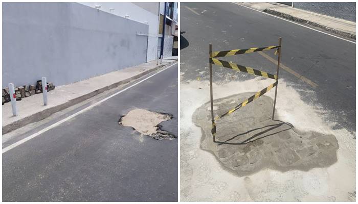 Após reclamação de moradores ao Blog, buraco em rua da Areia Branca é consertado