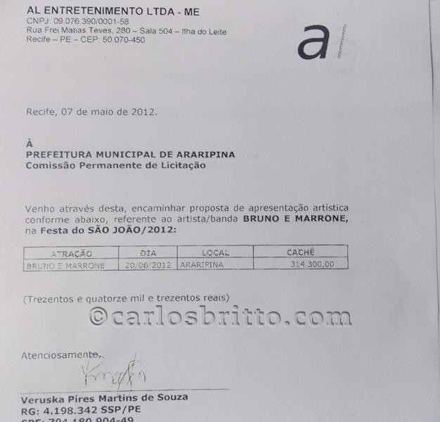 Em Araripina (PE), no Sertão do Araripe, a prefeitura municipal está sendo acusada de ter trazido, por um valor muito acima do mercado, algumas atrações para animar os festejos juninos da cidade no ano passado, conforme denunciou o Blog do Dante Arruda.