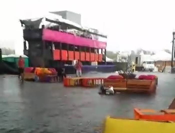 Um dos locais atingidos foi um posto de combustível, que acabou perdendo parte do teto por conta da ventania que veio junto com as chuvas. O muro da Fusam também não resistiu e desabou. Nem a estrutura de uma casa de shows onde o cantor João Gomes se apresentaria ontem escapou do temporal (vejam vídeo). O evento teve de ser cancelado.