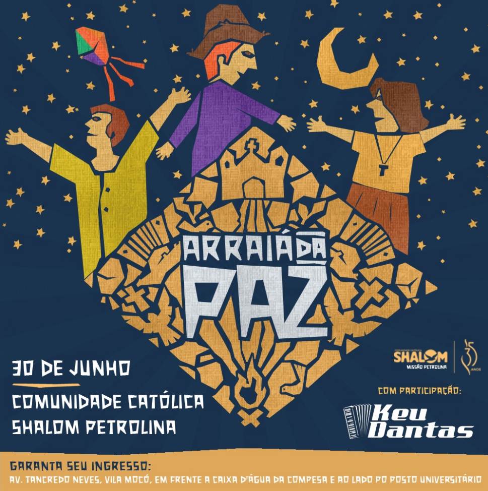 Forró, comidas típicas e brincadeiras serão os atrativos do ‘Arraiá da Paz’, que acontecerá nesta sexta-feira (30) em Petrolina. Idealizado pela comunidade católica Shalom/Missão Petrolina, o evento será realizado no Centro de Evangelização, na Avenida Tancredo Neves, s/n°, área central da cidade, a partir das 19h. O som ficará por conta de Keu Dantas.