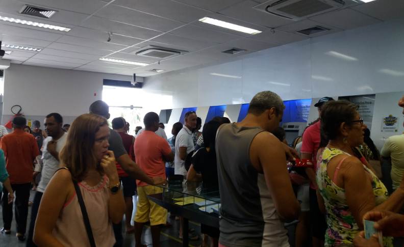 Agora falemos sobre os fatos que se repetem nos fins de semana, quase sempre. Na última sexta-feira, quem precisou de dinheiro a partir das 20h já se via de mãos atadas. Nem nos bancos oficiais BB e CEF. Muitos menos nos tais 24 horas. Quem precisou de um só Real pra salvar alguém, provavelmente saiu derrotado. Quando chegou o sábado e domingo, diria que o terrorismo sem armas foi pior. Foi grande o movimento de pessoas nas agências, entrando e saindo, indignadas, perguntando a quem encontrava no caminho se sabia onde havia caixa com dinheiro. Parecia que o mundo parou ali.