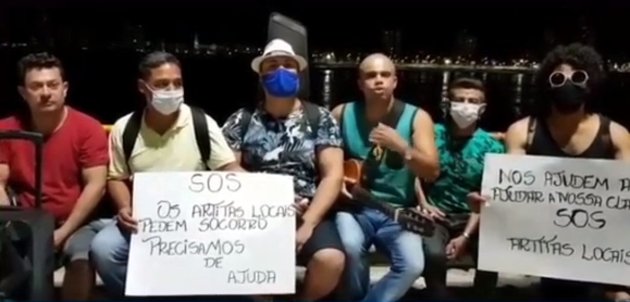 Com cartazes pedindo socorro, os músicos afirmaram que desde o início da pandemia eles estão passando muito “sufoco” para conseguir se sustentar. “Nós queremos chamar a atenção para que as autoridades entendam que nós também temos contas para pagar, muitos aqui pagam aluguel, como todo mundo. Nós somos pais de família, precisamos que as autoridades entendam que nós somos gente. E outra: a gente só leva a vocês alegria”, declarou um dos músicos.