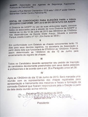 A Associação dos Agentes de Segurança Patrimonial Públicos de Petrolina (AASPP) está com inscrições abertas para aqueles que desejam concorrer à presidência da entidade. Os interessados devem procurar a associação até o dia 12 de junho para registrar as chapas que disputarão as eleições.