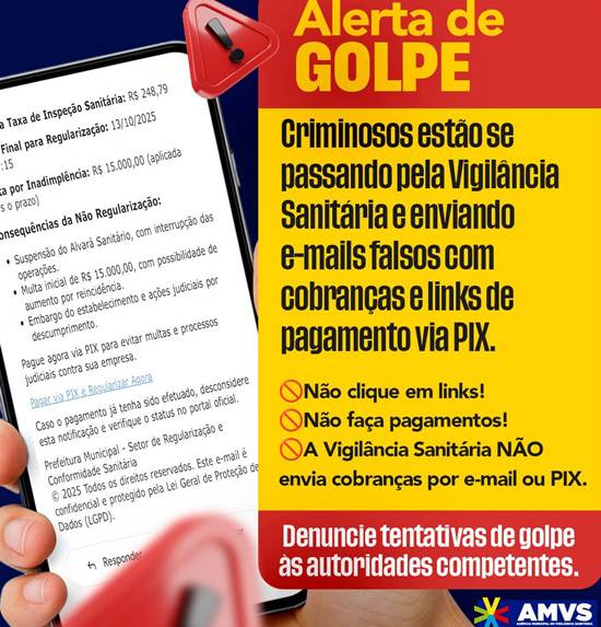 A Agência Municipal de Vigilância Sanitária (AMVS) está alertando a população de Petrolina sobre golpistas utilizando o nome da instituição. De acordo com denúncias, pessoas têm se passado por servidores da AMVS e fazem contato através de e-mail, pedindo que os débitos sejam quitados por Pix. Essa, no entanto, não é a prática adotada pela Vigilância. A emissão e o envio de boletos seguem rigorosamente os protocolos administrativos oficiais da instituição, totalmente diferentes das ações relatadas nas denúncias. A AMVS envia por e-mail apenas a protocolo de atendimento e os boletos, que vão com a identificação da instituição bancária e código de barras. Não é feito nenhum pedido de pagamento por meio de Pix ou transferência bancária. A Vigilância Sanitária […]