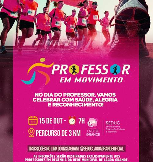 A Secretaria de Educação, Cultura, Turismo e Esportes (Seduc) de Lagoa Grande (PE), sertão do São Francisco, preparou uma programação especial para celebrar o Mês do Professor com o projeto ‘Professor em Movimento’. A iniciativa tem como objetivo valorizar os educadores da rede municipal, promover integração e incentivar hábitos saudáveis por meio de atividades físicas e momentos de confraternização. As ações começaram nesta sexta (10) com o ‘Aquecimento Coletivo’, quando professores participarão de um momento de alongamento e preparo físico coletivo. O desafio será registrado em vídeo e compartilhado nas redes sociais, marcando o início da mobilização e destacando o espírito de união da equipe. No dia 13 de outubro, será a vez da ‘Zumba do Professor’, uma atividade cheia […]