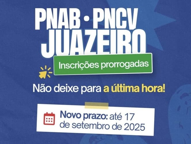 A Prefeitura de Juazeiro anunciou a prorrogação das inscrições para os dois editais da Política Nacional Aldir Blanc (PNAB). A nova data limite é quarta-feira (17), anteriormente marcada para domingo (14). A medida visa a ampliar a participação de agentes culturais e dar mais tempo para o envio de projetos. Os editais oferecem recursos para o fortalecimento de iniciativas culturais no município, totalizando R$ 410 mil em investimentos do governo federal. Podem participar Pontos de Cultura, organizações da sociedade civil sem fins lucrativos, artistas, agentes culturais e coletivos de Juazeiro. O Edital nº 011/2025 (Fomento a Pontos de Cultura) destina R$ 185 mil ao apoio de projetos continuados. Serão selecionadas duas propostas, podendo concorrer Pontos de Cultura certificados pelo Ministério […]