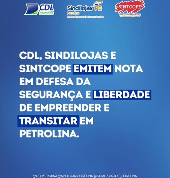 Em nota conjunta, as principais entidades do comércio de Petrolina – CDL, Sindilojas e Sintcope – lamentaram os últimos fatos ocorridos no Centro da cidade, envolvendo um homicídio e uma tentativa, para reforçar o clamor por providências às autoridades competentes. Até porque a sensação de insegurança na área e em toda a cidade não é de hoje. Confiram a nota: Com profunda indignação, a Câmara de Dirigentes Lojistas (CDL), o Sindicato do Comércio Varejista (Sindilojas) e o Sindicato dos Trabalhadores do Comércio de Petrolina (Sintcope), expressam repúdio diante da alarmante escalada de violência que assola as áreas de comércio e a nossa cidade em linhas gerais. As várias tentativas, bem como os homicídios registrados no Centro de Petrolina, mais especificamente […]