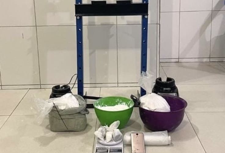 A Polícia Militar de Pernambuco (PMPE) prendeu dois homens em flagrante e desarticulou um laboratório usado para refino e distribuição de drogas no bairro João de Deus, Zona Oeste de Petrolina. A ação aconteceu após investigações e abordagens realizadas na PE-647, próximo ao aeroporto. No local, os policiais encontraram mais de 6,7 quilos de cocaína, além de pequenas quantidades de maconha e crack. Também foram apreendidos uma prensa hidráulica, uma balança de precisão e diversos materiais utilizados na preparação e embalagem da droga, como liquidificadores, sacos plásticos e bacias. Os suspeitos e todo o material apreendido foram levados para a Delegacia de Polícia Civil (PCPE), onde foram autuados por tráfico de drogas.
