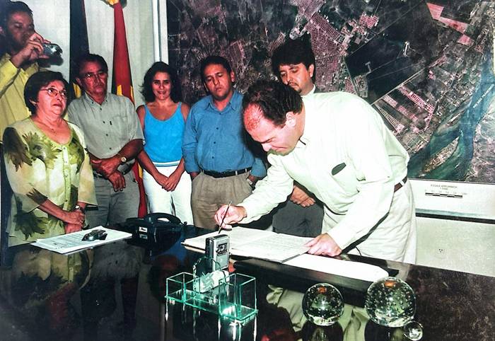 Em 2004 o então prefeito de Petrolina, Fernando Bezerra Coelho, transmitia o cargo ao procurador do Município, Alexandre Torres, em virtude de uma viagem que FBC faria à Inglaterra, para a acompanhar a formatura de um dos seus filhos, Pedro Coelho. A vice era a saudosa Isabel Cristina, mas ela renunciou para assumir à época a 3ª Superintendência Regional da Codevasf. Como aquele era um ano eleitoral, se algum dos vereadores da Mesa Diretora da Câmara Municipal assumisse a prefeitura, ficaria inelegível. Coube então, a Alexandre Torres, assumir a tarefa. Na foto, FBC passa o cargo em cerimônia que contou também com a vereadora Teresinha Coelho, o ex-vereador Durval Araújo e o secretário municipal de Comunicação Carlos Britto. Histórias de […]