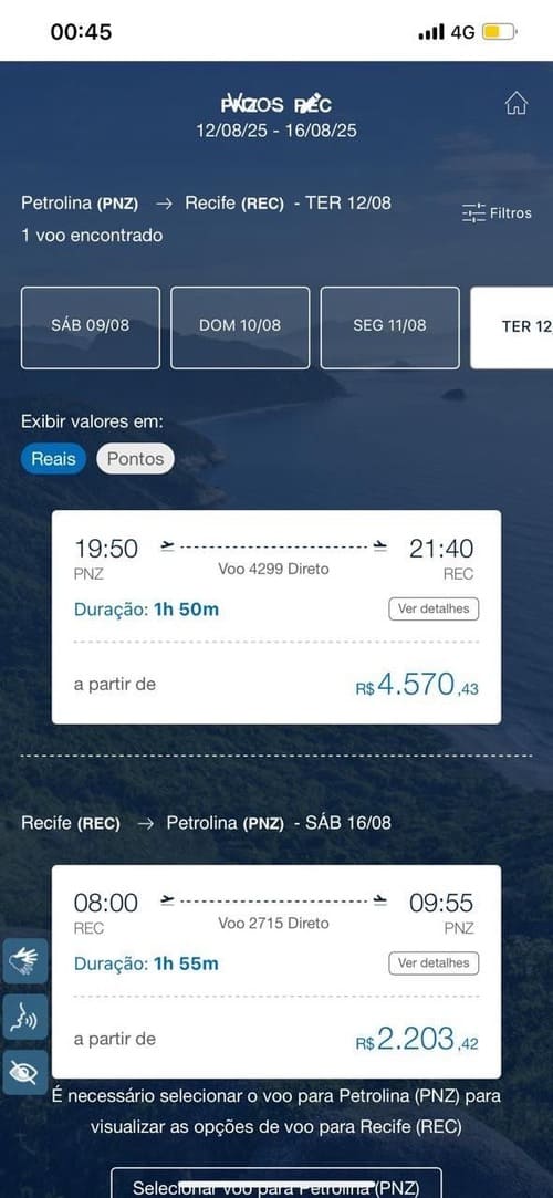 Um leitor do blog enviou uma reclamação sobre o preço da passagem de avião para Recife, que considerou um verdadeiro absurdo. Segundo ele, o valor cobrado para uma viagem no dia 12 de agosto está em R$ 4.570,00, um preço incompatível com a realidade da maioria da população. “É um preço que simplesmente ninguém consegue pagar. Está um absurdo e precisa ser fiscalizado”, afirmou. Esse aumento dificulta o acesso ao serviço e compromete a mobilidade da população. Fica o alerta para os responsáveis.