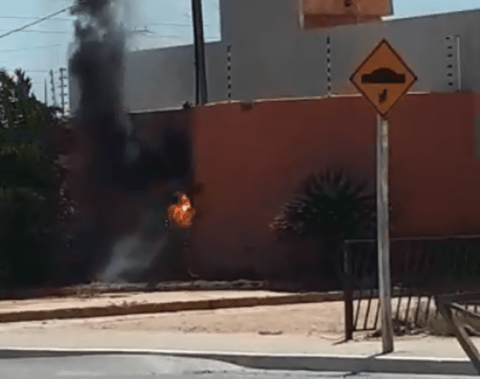 Um padrão de energia elétrica pegou fogo na tarde de hoje (22) na entrada de um motel localizado na Rodovia Salitre, no bairro Piranga, em Juazeiro (BA). De acordo com informações, o fato aconteceu por volta das 13h. A cena chamou a atenção de pessoas que passavam pelo local. Ainda segundo informações, ocorreram pequenas explosões. Depois o equipamento começou a incendiar, provocando o rompimento da fiação e susto nas pessoas que circulavam pela via. O Blog não conseguiu contato com o motel para obter outras informações. O caso acontece dois dias depois de um padrão elétrico pegar fogo em uma escola infantil recém-inaugurada pela prefeitura no Residencial São Francisco, também em Juazeiro.