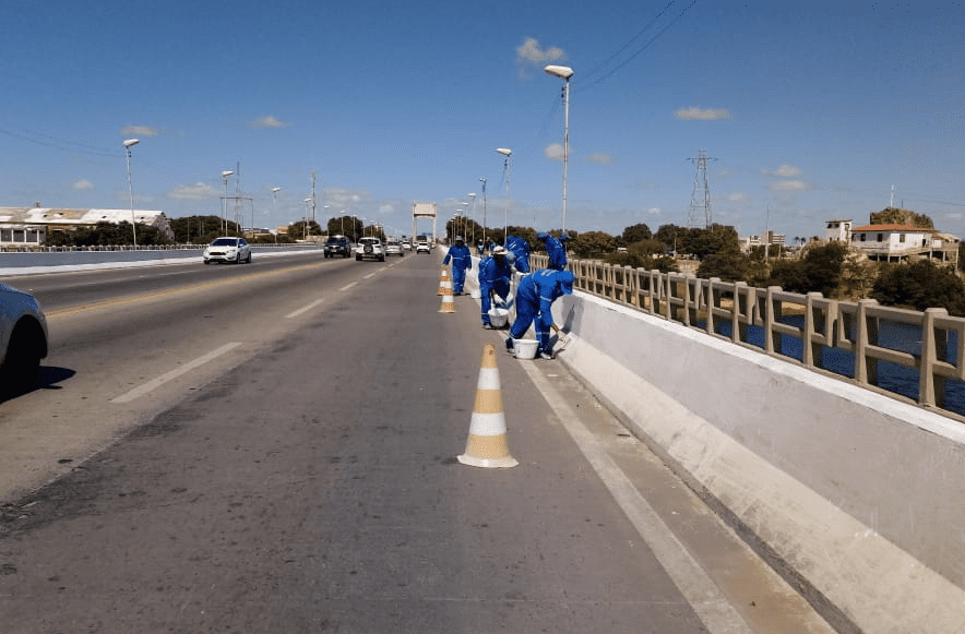 O lado petrolinense da Ponte Presidente Dutra recebeu serviços de limpeza e manutenção, ontem (31). De acordo com a Prefeitura de Petrolina, durante toda manhã, cerca de 20 homens realizaram o serviço de varrição, manutenção na iluminação e pintura de meio fio. Eles contaram com a ajuda de uma caçamba para recolher o material retirado. A Secretaria de Infraestrutura, Mobilidade e Serviços Públicos (SEINFRA) foi responsável pelo serviço, realizado através do programa ‘Cidade Mais Limpa’.