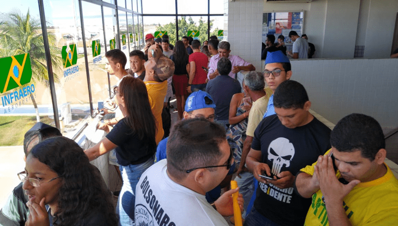 Apoiadores de Bolsonaro em Petrolina aguardam presidente no Aeroporto Internacional Senador Nilo Coelho